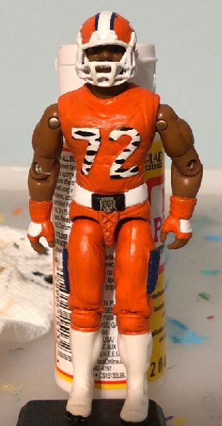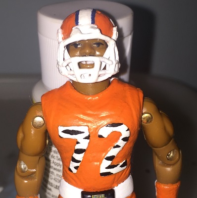 I always wanted to see the Fridge as a Tiger Force member and felt it was a missed oppertunity. William Perry played his college ball at Clemson University and their mascot is the tiger, right down to a giant tiger paw print on the side of their helmets. So, when we needed to show how to paint Tiger Force stripes for the 2018 Codename: Iowa's Assembly Required customizing tutorial, I knew exactly who I was going to showcase.