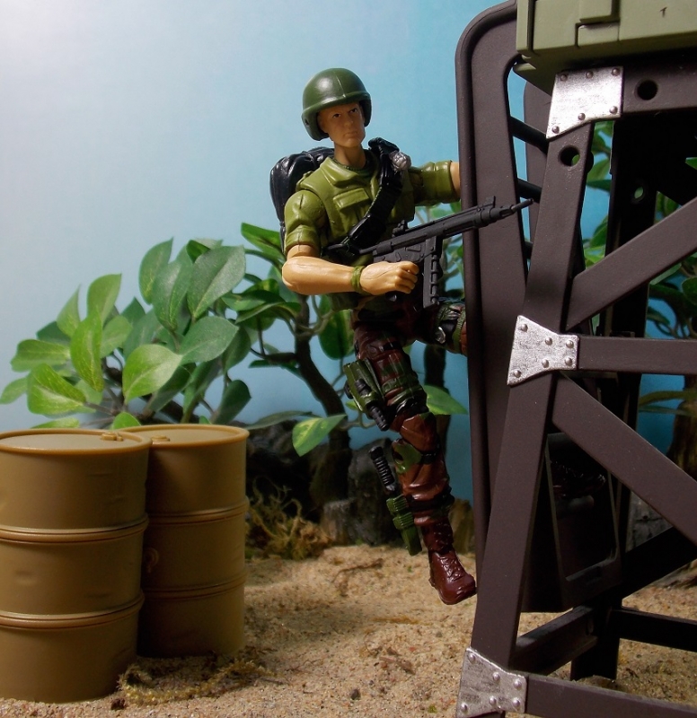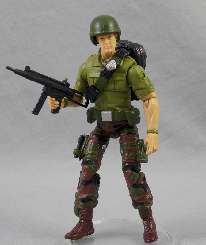 GI Joe came storming back to store shelves in 1997 with the Real American Hero Collection. No GI Joe relaunch would be complete without a Duke figure, so one was released with a repaint of the Silver Mirage Motorcycle. This time, Duke was sporting a similar color scheme to his Tiger Force version, but different. For my custom, I tried to play up the differences, while keeping the feel of the 1997 version. This custom will be part of my jungle squad of Joes.