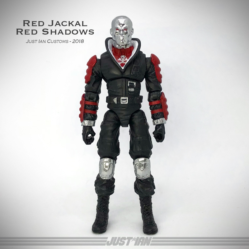 Before the late 90's, before the internet, I wasn't aware of any foreign G. I. Joe action figures. It would have been easy just to repaint an actual Destro figure, but I wanted to give him his own personality. I went with the Destro torso, but wanted him to be more battle ready. With the extra armor of the IG arms and the combat boots of the Roadblock figure, I think I got the right look for my version of Red Jackal.