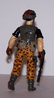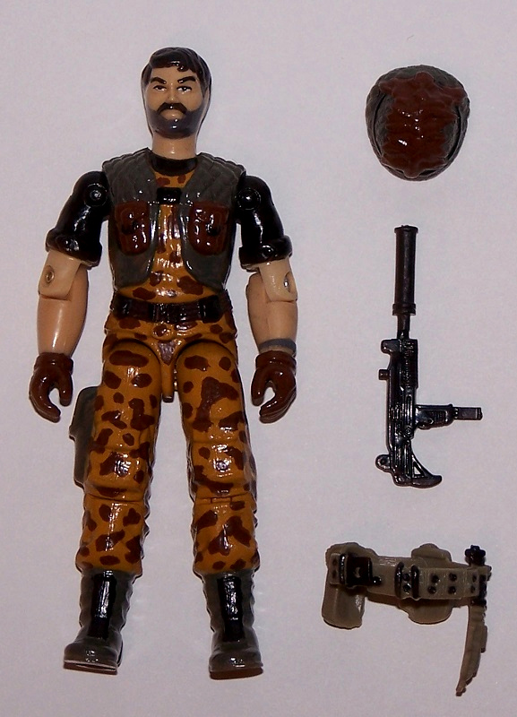 I wanted to do a figure that takes some elements from both the vintage and modern version of Claymore, and which maybe tones down the rather bright orange of his original outfit. I used parts from Crankcase because the arms match the original's quite well (which used Flint's arms), and the legs make good generic military legs. And most importantly, I have a small pile of spare Crankcase figures to draw parts from, so I'll use him whenever possible. I painted the camo pattern to roughly match the original, and the black t-shirt is drawn from the modern figure.