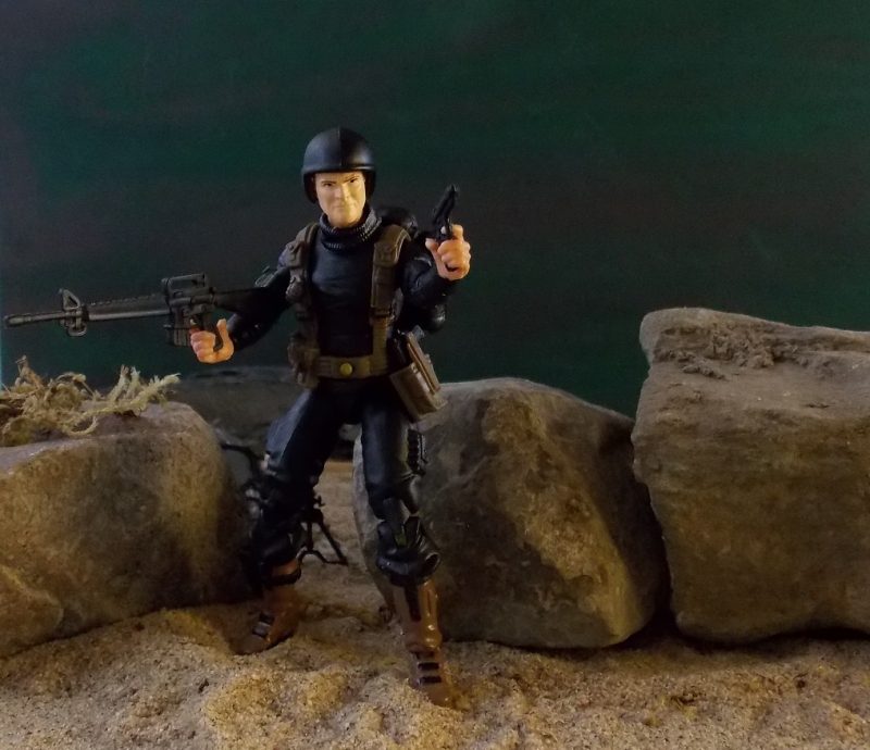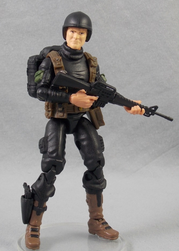Grunt is my all-time favorite Joe. He is the character for which I have made the most customs (probably over a dozen now). Recently, I updated my OG13 customs and Grunt got a decent upgrade. Since I really like the recipe that I used, I figured I would give it a third (after green and tan) color scheme. I picked classic black with some green and brown highlights. I stayed away from red, which I usually use on my Night Force customs, to keep the original 13 feel.