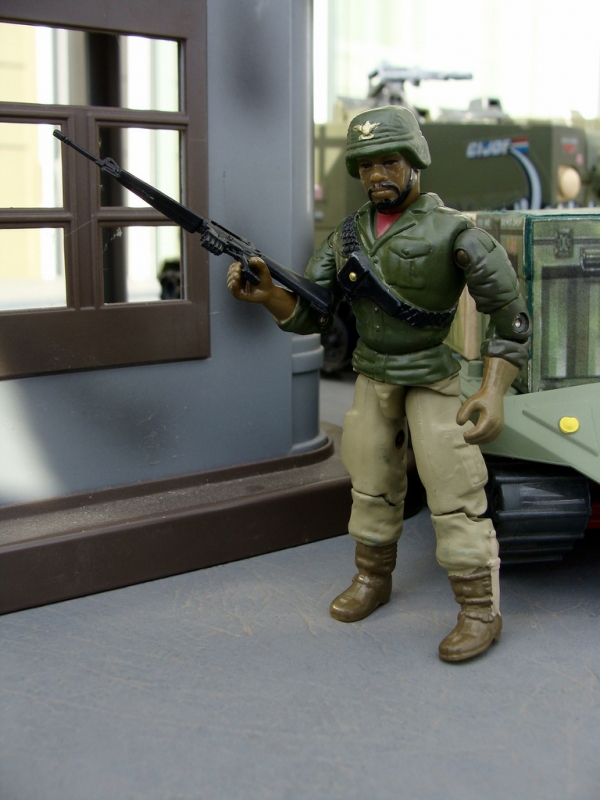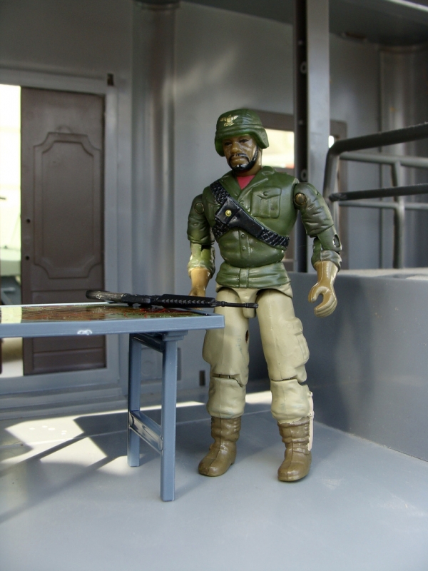 I've always liked Col. Courage, and have always looked at ways to expand his role in my GI Joe stories. After I noticed the file card for the '93 version didn't allude to him being a new recruit, I figure he could have been a part of the team for years. that's where the inspiration for this figure comes from. This figure was designed to fit in with my '87 assortment of figures, and would be the man in charge of the Mobile Command Center. I figure Steam Roller would drive the thing, but its Courage that oversees the operation of the giant mobile headquarters.