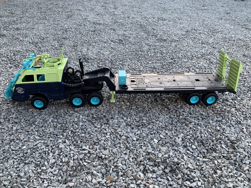 After the success of the Dreadnok Battle and Tow Rigs, Zartan requested a semi tractor trailer to be commissioned. The Ground Assault color scheme was chosen to support the Ground Assault 4x4's on the battlefield. The Ground Transport is ideal for hauling everything from supplies, motorcycles, vehicles, damaged vehicles and tons of grape soda. Cold Slither now even have a mobile stage to perform on!