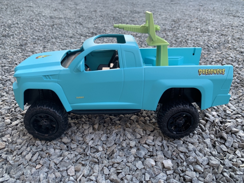 The Ground Assault Jeep's are the staple of the Dreadnok ground forces and while very effective, they are aging. With many having increasing down time for repair and the associated costs to keep them operable, Zartan was driving by a used car lot and saw this truck and thought lets give a fleet update a try. Already having a lift and offroad tires this truck is set up for the swamps or the roads. The higher ground clearance makes it able to go where the Ground Assault Jeep's cannot. A captured Desert Fox provided the firepower. An engine turbo upgrade makes the Punch an excellent modern update to the Dreadnok fleet.