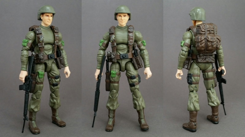 I am not sure where the M16A2 came from, as I picked it up loose. Since I've given my Zap and Short-Fuze the standard issue M16A1 mold, I wanted something a little unique for the original bearer of the M16. I was tempted to use the Sgt. Airborne M4 (such a great sculpt) but felt that it wasn't 1982-1983 enough. Thankfully, the M16A2 works for that time period, and looks pretty sharp with its unique and more modern round barrel. I wish this sculpt was more commonly available during the 25th/30th run.