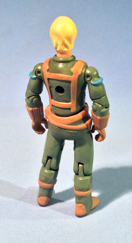 The blonde hair is based on how Flash was colored on the cover of Marvel's GI Joe #1. I normally don't use a straight yellow for hair, either adding some tan to it or putting a gold wash over it. But here keeping it as a saturated yellow was necessary to disguise the Tomax head.