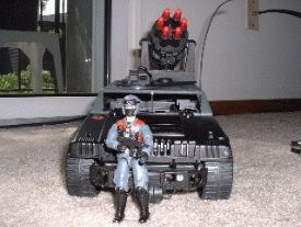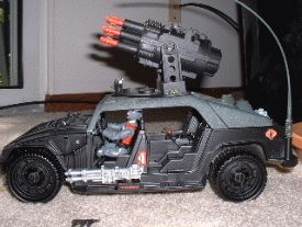 GI Joe Brawler with Locust mini chopper cannons attached. Stickers are computer printed.