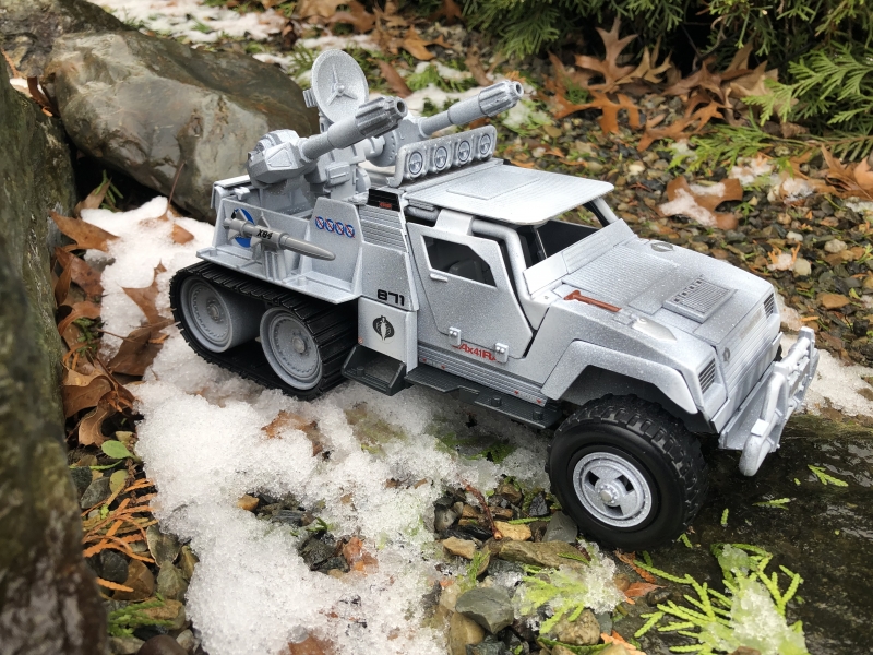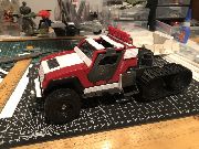 I've always loved Half tracks. I decided to chop the front off an old Vamp I had painted years ago and I fit it on the back of a Snow Cat. I used styrene to fill the gaps and make to make it look seamless and added a roof and window armour. To help make it look more like a truck I built up the front engine area and added some detail pieces as well as a new front ram bar. I used the bigger wheels from the Snow Cat which required building a whole new front axle and I also added rocker panels and side steps. The rear gun is made from the Snow Cats missile peg and shortened ASP cannons with Maggot gun caps. The paint matches all my other Arctic customs I have done for Cobra.