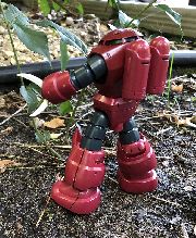 After I built the model, I realized I hated the orange torso & head of the base Mech, so I sprayed them with as close a color as I could find to the red of the other parts, then added the Red Shadows sticker.