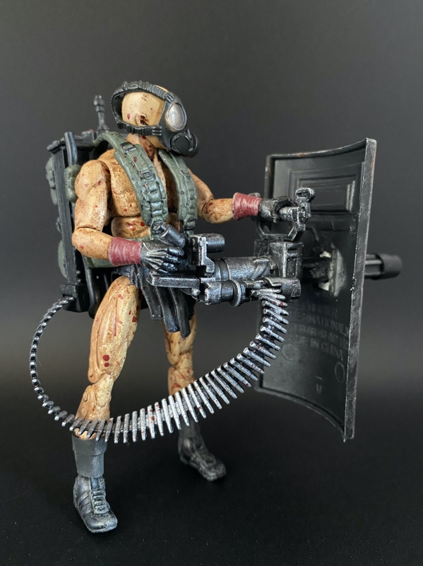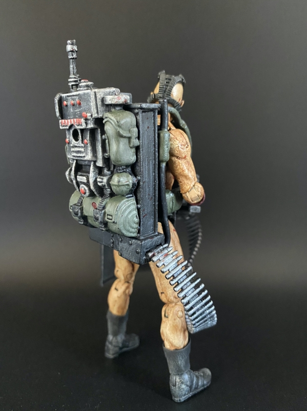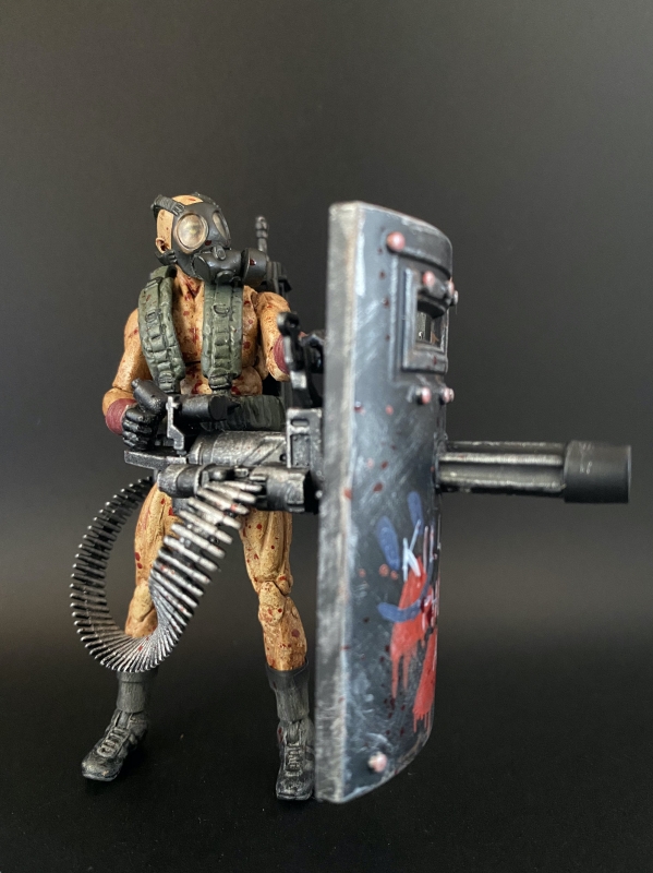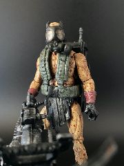 While many arm and armor themselves, DVS does not. He has no fear. He takes to the Wastes clad in boots, gloves, loin cloth, and gas mask ready to rain lead hellfire on anyone unfortunate enough to pass within range of his deadly onslaught.