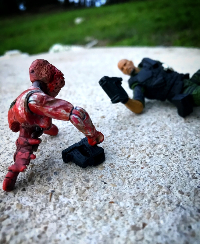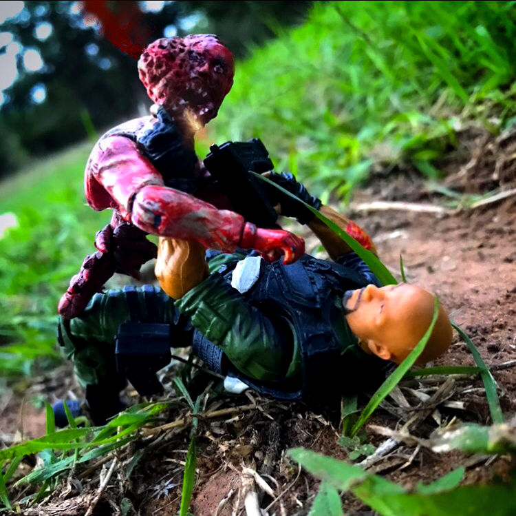 After Dr Mindbender created a deadly virus, he tried to find an antidote for it before he released it on the Joes just in case any Cobra personnel happens to get infected by it and Cobra Commander would find out and kill him. Unfortunately the virus was quicker than Dr Mindbender and infected a crimson guard causing him to become patient zero of the deadly virus. After some time the virus mutated and was able to create different forms of itself. This is one instance. A cobra Bazooka trooper turned zombie. Now the world is starting to become infected with the virus. Hopefully the Joes will figure out a way to stop it. Thankfully it's in the third stage of mutation so it's no longer airborne. Only by getting it inside your bloodstream can it infect you.