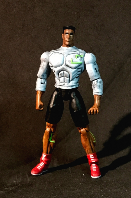 It's worth noting that the Race Bannon body had some "circuitry lines" sculpted on to it. Instead of removing them, I simply painted them as if they're some kind of high tech body monitoring system. This gives what would otherwise be a generic boxer a bit of visual interest.