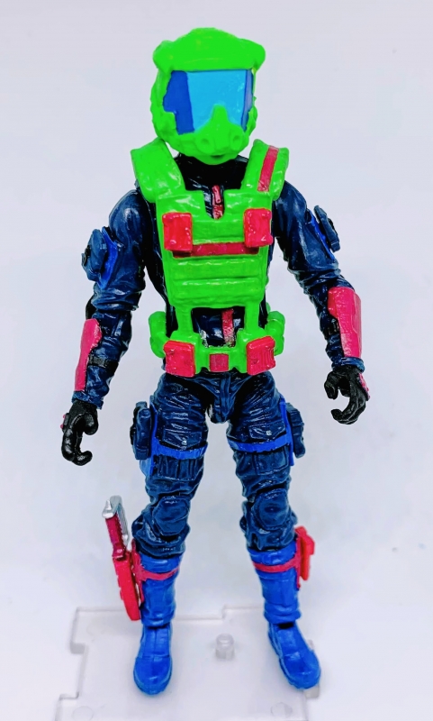I used a Raginspoon "Gyrator" cast helmet to try to imitate the squared-off look of the original figure. I tried to use colors that matched the original figures, but fell a little short.