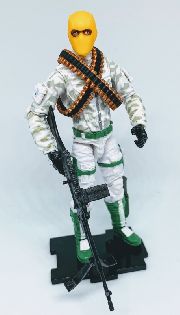 As far as Iceberg goes, he's not bad, the yellow balaclava head and yellow gloves are impactful. I like the crossed ammo belts although I don't know if he particularly needs them. My favorite part of the figure are the green and white boots. They look sports inspired as opposed to military inspired. The accessories are nice. The wrapped submachine gun and snowboard compliment the figure very well.