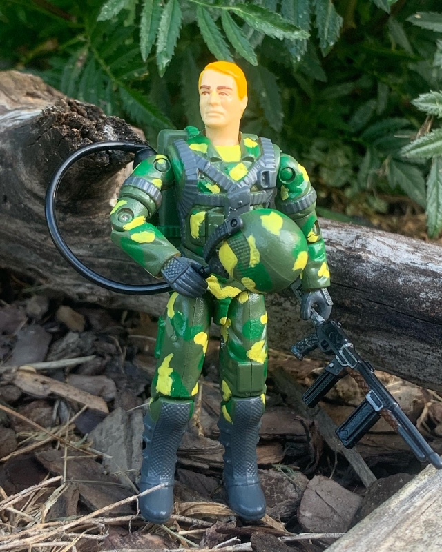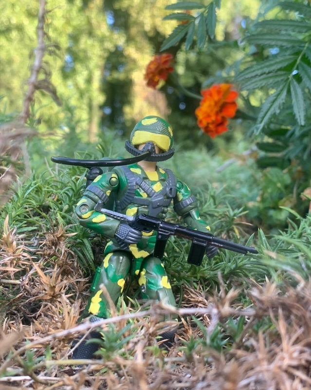 I got in a couple of new colors, Warpstone Glow from Citadel and Moon Dust from Wargames Delivered. The Warpstone glow is really only visible on the backpack straps and not so much on the camo. I might go back with a deeper green but I like how he is now.