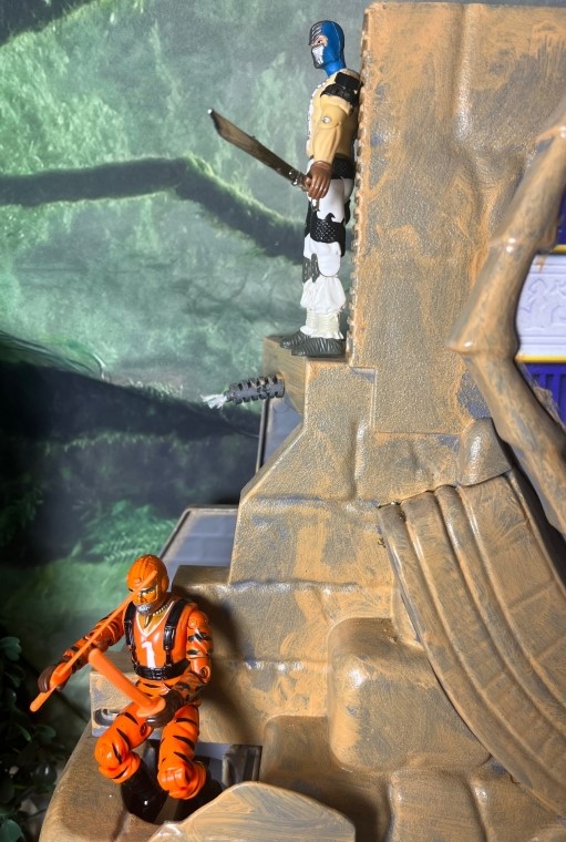 Brown Backpack / Arashikage swords - they have the red glyphs on the side, these are Storm Shadow's confiscated weapons he's wearing