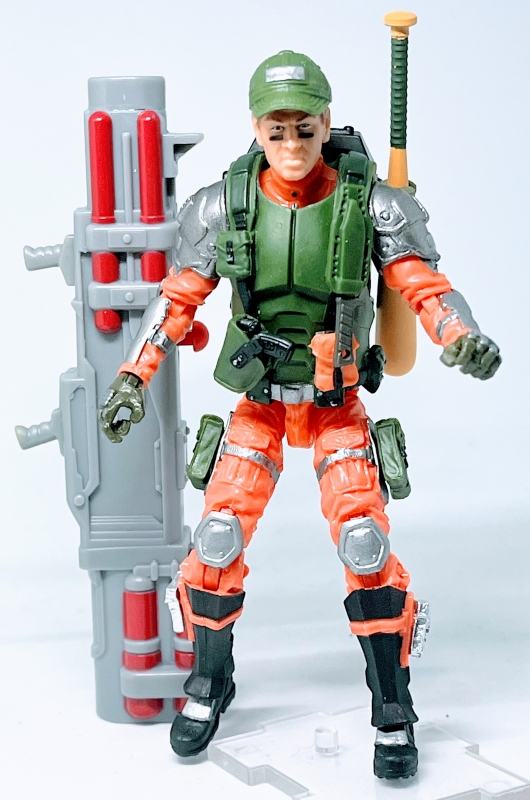 I wanted to lean just a tad bit more into the baseball aspect of his call sign. Give Hardball someone to chew the fat with. So, I gave Grand Slam an off-duty look with the cap and bat. I also wanted to give Grand Slam a new designation, again with a baseball tilt. I thought I might revisit that thing G.I. Joe did in the first couple of years with those stupid, contrived acronyms like VAMP (Vehicle Attack Multi Purpose, yuck). So I am calling him a B.A.L.R Trooper. Or the "Battlefield Artillery Laser (Recoil-less)" Trooper. Stupid but fun.