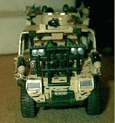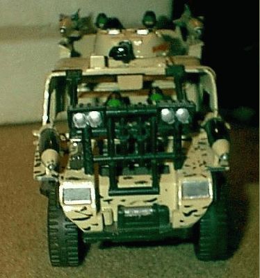 Stinger jeep, top to the APC, Desert Scorpion brush guard, Sky Striker, and Rattler Missiles