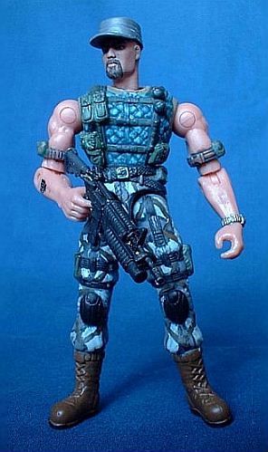 I thought the new version of Gung Ho was interesting but it didn't quite sit right with me. I liked the card art quite a bit but felt that the figure's legs were too long and torso too short. I added one of the o-rings to increase Gung Ho's torso and then repositioned the botts so the figure could have a more natural stance.
