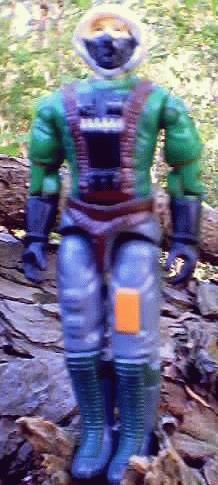 With this custom I tried to play up the Robin Hood angle of the original Hunter's bio, hence the hood instead of a helmet and the Air Devil arms which, although you can't see them, have laces on the sides of the biceps. The Light Infantryman part, however, came from the Rock Viper torso and Stretcher waist.