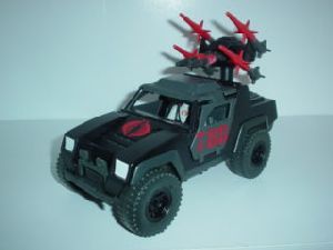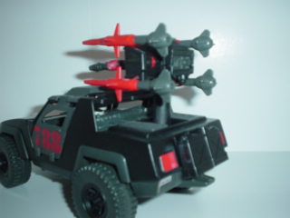 I got out and snagged about two boxes worth of random toys, and about a box worth was all joe. I got a lot of weapons, some vehicles, but no figures. Well, the VAMP I got was pretty trashed. i used to just lot out the crappy ones and ebay them, but since I have been on this custom vehicle kick, I messed with it a bit. What I came up with was all all black VAMP with a kit bashed turret that was really quick and a lot of fun. The turret is a Pac Rat Machine gun unit, with holes drilled to take a missile launcher bar.