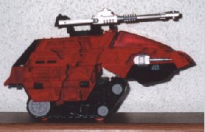 It's a straight repaint with a base of crimson red and camoed by victorian red with black "stripes". The guns are silver with gray highlights to the tracks. The lights and bullhorns are black and silver with the lights having a cover of king's gold and silver. Overall I'm very pleased with the way this turned out. It looks much, much better in person then it does in the pictures. But that's the way of things when you have to use a 35mm camera instead of a digital camera with a good macro zoom.