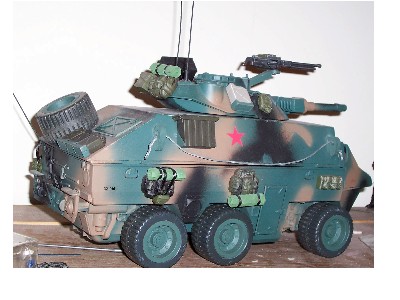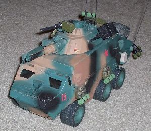 The BTR-60 armored personnel carrier, the first in the line of Russian 6-wheeled APC's, was developed in the late 1960s to replace the BTR-152 (6x6) . It was continuously improved throughout the 1960s culminating in the production of the BTR-60zB. The BTR-60zB performs well cross-country in conditions that favor wheels. On land or water, the vehicle is steered by the front set of wheels which also have power steering. The boat-shaped hull with sloped sides provides good swimming capability and helps deflect hostile fire. The BTR-60PB has a searchlight and IR equipment, giving it a night fighting capability.
