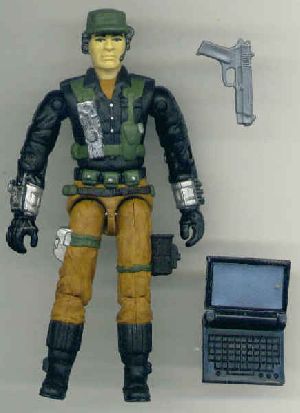 Well, I like the idea of the character and since Mainframe is dead, the Joes do need a new computer specialist. My Firewall is good and all but she is young and lacks experience. This leads us to the need for Hard Drive. I like the Hasbro concept but I needed one done in ARAH style so here he is. The added peice on the torso is from the VvV wrist thingiemagigers and the walkie talkie on the right arm is from BBI.