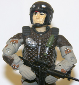 This was nothing more than an attempt at mastering the 'chocolate chip' camo pattern of the Gulf War 1 era. I'd only tried it once before, on the General Hawk figure (also on this site), and was less them impressed with my first attempt. This is an improvement, and I am now happy with my hand at desert camo.