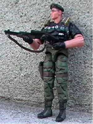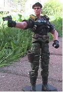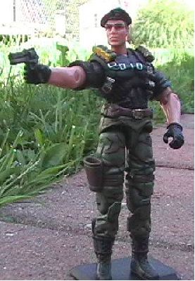 I wanted to make a black T-shirt wearing flint, and thought the Snake-Eyes torso would work well with the straps molded on it already. while I was at it, I got rid of those silly stock legs too. In the end I think it all came together nicely.