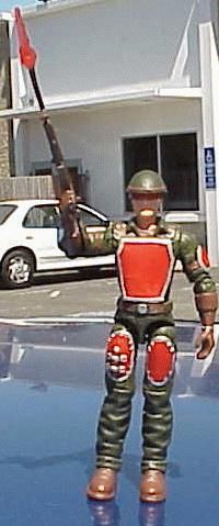 I have always liked Flash. Plain and simple and boy was I ticked off when he got killed off. About a week before I bought the Gi Joe issue where he got blown up with Mainframe, I had thought of making an updated version of Flash. After reading the issue and saying a few choice words out loud, I decided on making the custom anyway. Flash was always a thinner character, so I chose Recondo's Torso and dremmeled it down. The red chest padding is a static cling sticker I cut and painted. Red spot's helmet without the face plate I thought would look like a cool update for Flash. I really tried to keep the original flavor of Flash, while updating the figure. You like?