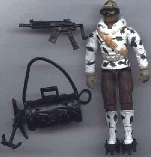 I always thought this Stalker head would work better for Alpine. I tried the goggles on him and it looked perfect. I got the camo idea from GI Junkie's Global custom. My thinking being if he was pinned against the side of a mountain or just coming up over the edge a tree would make for the best camo. The Elite Force feet give him better climbing articulation.