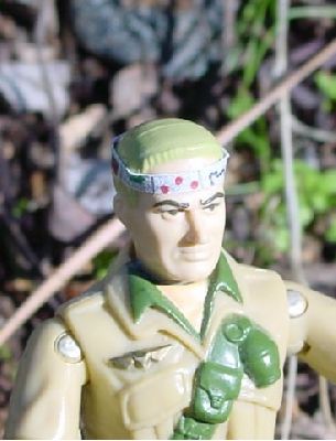 A pretty easy custom. I hacked into the neckball to make it fit the "generation 1" body. I used regular ball point pens to make designs and whatnot on an Avery address label, then X-acto'd a strip and stuck it on his nogin. I think the expression on his face is perfect for the part where he's running thru the woods trying to escape Cobra Headquarters.