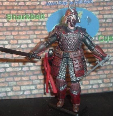 Ever sence the very first Budo in 1988 I have wanted one with removable armor.. And with the M&A books showing him in a Gi I desided to go that route for his under clothes.. It took nearly 2 months but I think the results are above par.. 2 Lord of The Rings figures were sacrificed (I got em at a garage sale hahaha) to make the armor as well as various spy gear..