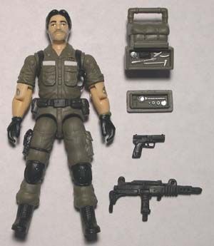 I had planned on giving him the Uzi, since it was his weapon of choice in the comics, so I decided to give him an ammo pouch for it on the right leg. I didn't want anything on the left leg, though, so I sanded off the strap and glued on a BBI pouch.