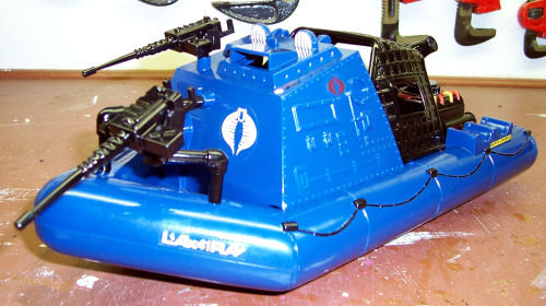 After many skirmishes with G.I. Joe and other country's militaries, Cobra salvaged what was useable from battle and retooled it back at Cobra Island. It is armed with machine guns, depth charges and surface to air/land missiles. Its smaller size makes it able to get into areas that the Moray Hydrofoil cannot and drop Eels into these waters.