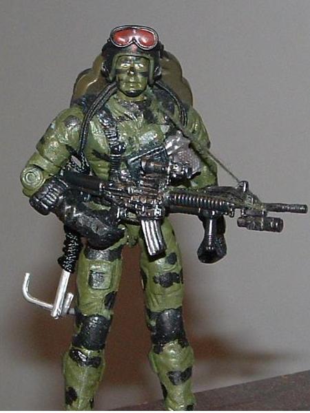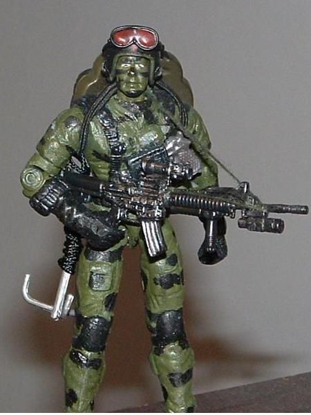 From the home office in Sioux City, Iowa.......The character of Hit & Run has a pretty tough background. Dead parents, tough missions on Cobra Island, resucing hostage after hostage, and I thought a more hard-boiled look was in order. The Blackout head is one of my favorite head sculpts and while it seems a shame to cover it up with camo paint, I think it looks awesome. I also wanted a removable helmet and working goggles.