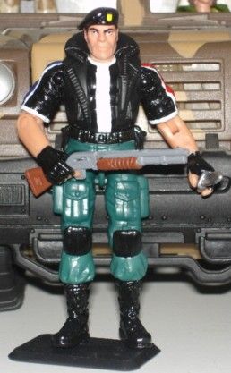 Now that Devil's Due has made a new Joe series of comics, I wanted to try some of the new figures with their new looks. I've already done one of Shipwreck that I thought came out really good. Here's my take on Flint. I went for the vest look like on the cover of issue #2, with the tight fitting shirt underneath, I painted on the white lines as well as the red, white, and blue stripes, Seems like the new motif of the new uniforms, to have red, white, and blue somewhere on it. The gun is from Dr. Mindbender, I cut off the sound thing and repainted it.