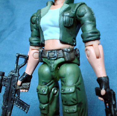 I based this look off of Devils Due G.I. Joe vs. Transformers. They had some updates to the characters in that comic that I actually liked better then their ongoing series. I figured Lady Jaye was one of the few women who could dress like this and get away with it. I wanted to have her in her basic color scheme but also do something different, which is when I decided to go with the open shirt.