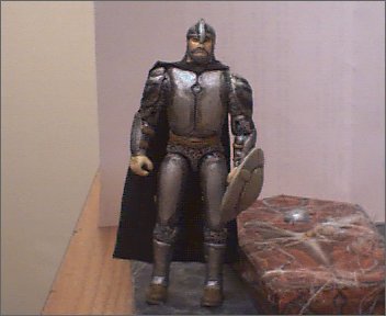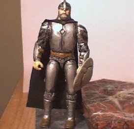 The whole figure was drilled with tiny holes using a dremel to make the chain mail look. The plated Armor was molded on using the Milliputt and manipulated until I had the correct look from the game