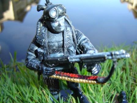 Pump pistol grip shotgun: Modified BBI, front grip is a pistol cut of and glued on. Bandolier is made from Chap Mei ammo belt and parts of the load bearing vest from the BBI Breacher SEAL.