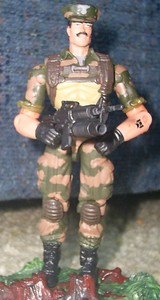 Also, added the knife to the chest, repainted completely, and gave him a new weapon. The gun is just the M-4/203 that came with the DTC Footloose, but I cut some of the unnecessary plastic away from where the grenade launcher and rifle meet.