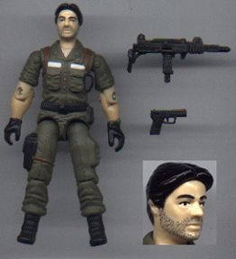 This is just a very small update to my previous Clutch figure, but I think it makes a big difference. I wasn't sure how I wanted to do the stubble, but I knew I didn't want to just paint on a grey five-o'clock shadow. To give him the stubble, I basically gave him a tattoo: I used a sewing pin dipped in a shallow reservoir of black paint, and applied each dot of stubble individually. It took forever, since I could only do about five or six dots before I had to wipe the excess paint off. I'm really happy with the outcome, though. From a distance, it actually looks like a few days of facial hair growth. I also threw in the uzi, since that was Clutch's weapon of choice in the comics. I still love the shoulder holster on this figure.