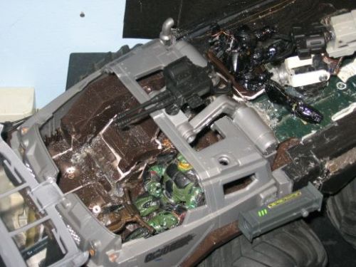 Back half: A old Hard Drive, part of a RC Jeep and some plastic