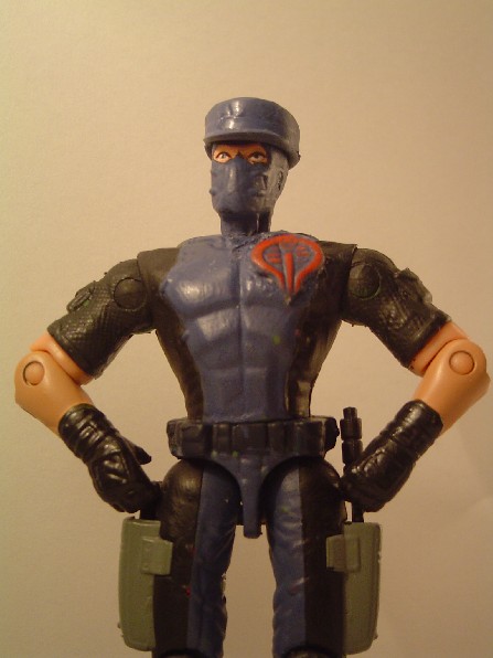 I cut a notch in the right side to hold the pistol, cut out the Cobra logo from a cape and glued it on the chest for added effect. I like how the blue on is subtle; it gives the realistic look of blending in with the water. I am looking at making an entire Eel team out of this.