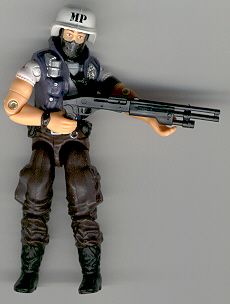 Since his head is pretty round anyway, it's extremely easy to shape it into the covered mask that you see here. Simple black semi-gloss paint, and I've got an MP that's fit to walk the streets.