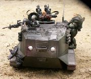 For the vehicle most of the parts were glued on using Hot Glue. It was the only thing that would stick. As for the turret, I simply cut a hole in the roof and inserted the top section from a damaged HISS (the turret retains its' full range of motion). I then replaced the HISS cannons with Chap Mei guns for a more realistic look. The radar devices are from the Star Wars line. The Cameras, mics and spot lights are castings from various lines.