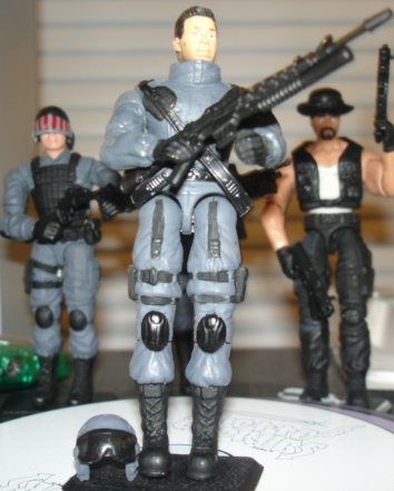 Halo is the fourth figure I've finished of the new anti terrorist group known as the Phoenix Guard. I'm not gonna go into details about the background of this group incase any one who is seeing this hasn't read G.I. Joe # 13 yet. But I love doing new characters as they debut, and the Phoenix guard is no exception. All of the Phoenix Guard was pretty easy to do; it seems like DDP made them based off of newer figures and parts.