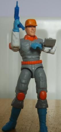 Space Force - the Star Brigade of Action Force, and about as loved. I never really liked it, but was determined to do all parts of the range, good, bad, insane or otherwise. For Skyraider, this is a basic capturing of the original silhouette, minus the oversized Space Force logo on his chest, partly because I'm not too good at painting that sort of thing, partly because it looks ridiculous. I rather like the use of the Hard Drive arms, which I always had earmarked for a Space Force custom due to the 'space age' wrist communicator.
