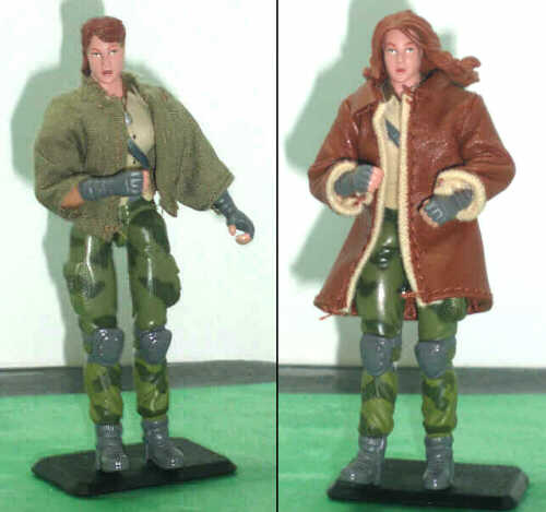 Jackets I found from a couple sources, and then I sculpted her some new hair. I put parchment paper between the long hair and the back of the torso, in order to keep from the green stuff sticking to the plastic.